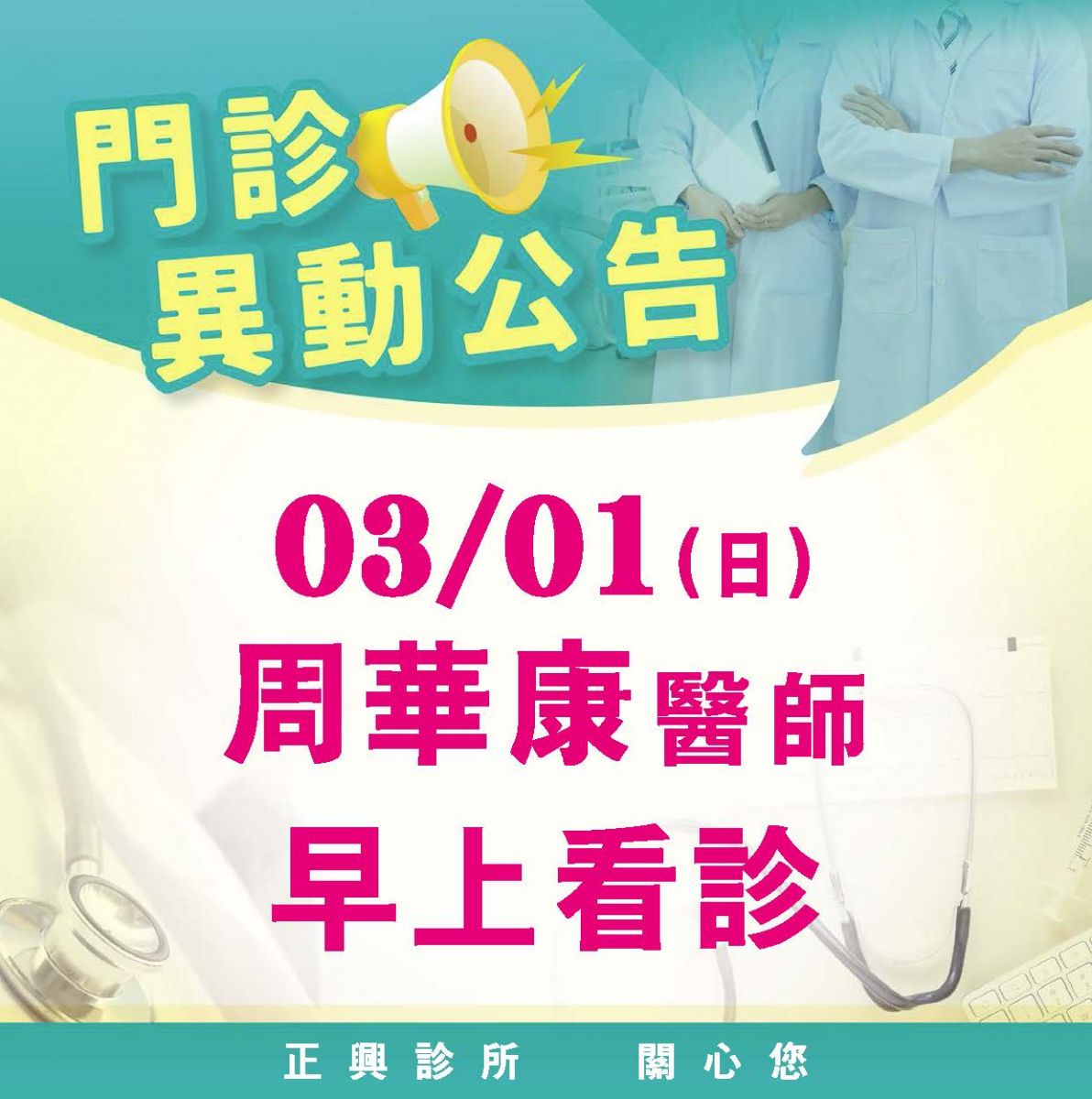 3月1日週日內科加開門診