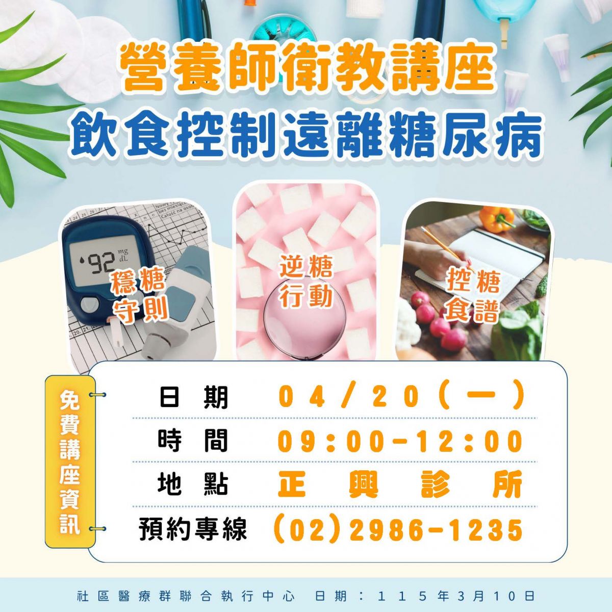 115年4月營養師衛教講座:飲食控制遠離糖尿病